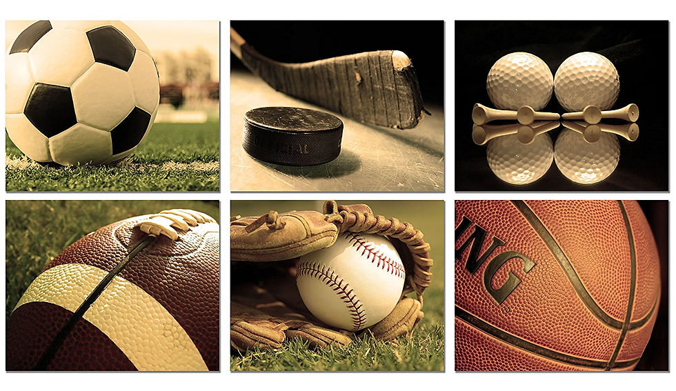 Sports Wall Art Prints - Baseball Basketball Soccer Football Golf Hockey - Set o